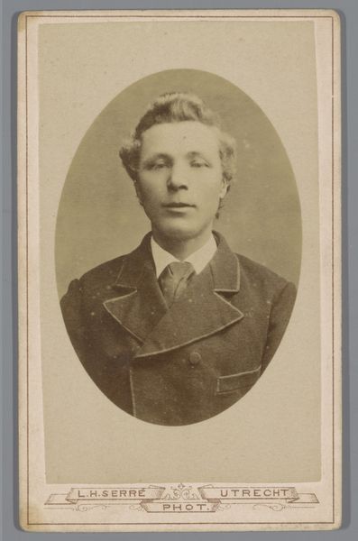 This portrait of an unknown young man was made by Lodewijk Hendrikus Serré, most likely in his studio in Utrecht. It is a photograph, a relatively new medium in the late 19th century, and its small size suggests it was intended as a calling card, a popular format at the time. The photographic process itself is critical to understanding this image. The subject would have had to sit still for a relatively long exposure time. This influenced the final product, which may appear stiff or formal to our eyes, but was simply a result of the technical requirements. Moreover, photography was quickly becoming a business. Studios like Serré’s were part of a growing industry that democratized portraiture. Suddenly, it was not just the wealthy who could afford to have their likeness captured, but also the emerging middle class. This image is a testament to the changing social landscape, where new technologies and materials were reshaping not just art, but also everyday life.