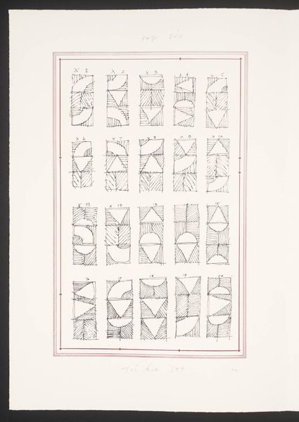 Editor: Here we have Julie de Graag's "Haakwerk met decoratief blokkenpatroon" from around 1892. It's a pencil drawing, quite small and delicate, of what looks like a crocheted or knitted pattern. I'm immediately drawn to its repetitive nature; it's almost mesmerizing. What strikes you about this piece? Curator: This drawing gives us insight into the intersections of art, craft, and design at the turn of the century, especially concerning the burgeoning Art Nouveau movement. The drawing's subject, seemingly a textile design, is incredibly interesting. It positions "craft" not as merely functional but as a legitimate subject for artistic inquiry. How do you see its relationship to the decorative arts? Editor: Well, it feels like she’s elevating a craft typically associated with domesticity to the level of fine art through drawing. The precise lines and attention to detail are striking. Do you think the social status of women influenced her focus on such subjects? Curator: Absolutely. Women artists often engaged with "feminine" crafts as a form of both expression and, sometimes, quiet subversion. De Graag may have been making a statement about the value of women's labor and creativity. Consider how the Arts and Crafts movement sought to reclaim handcraftsmanship against industrialization; it wasn’t merely aesthetic. What do you make of the grid-like structure underneath? Editor: That’s interesting. The grid almost feels like an underlying structure attempting to give a sense of order and intention to the design. I initially overlooked the grid but I am more aware of the composition and pattern-making techniques within the art, and how societal forces can shape artistic choices. Curator: Precisely! It demonstrates the thought process behind decorative design at this time, where even ‘domestic’ work was heavily considered and deliberately produced within specific social contexts. This was informative!