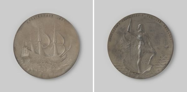 Curator: So, this is "Boerenoorlog, penning geslagen ter ere van degenen die hun leven gaven voor koning en vaderland," a bronze relief medal by Emil Fuchs, created in 1902. It depicts scenes from the Boer War. What strikes you most about this piece? Editor: Well, it’s a medal, so it's small, but it still feels... weighty. The subject matter seems serious, especially the image on what I presume is the reverse of the medal, which looks mournful. I’m curious, what’s your take on why it was made? Curator: Given its historical context, we need to acknowledge the complexities and injustices inherent in colonial wars. This medal, while ostensibly honoring those who died for their King and country, functions as propaganda, glorifying a conflict rooted in imperial expansion and the suppression of the Boer people. What message do you think the artist intended to convey, and what message might we interpret today? Editor: I guess I see how easily these kinds of objects can become tools of nationalist narratives. Was this common at the time, to produce commemorative art like this that's...basically promoting a certain viewpoint on history? Curator: Absolutely. Medals, monuments, and history paintings often served to reinforce dominant ideologies. In this case, it reinforces the righteousness of the British Empire and diminishes the experiences and perspectives of the colonized. Considering Fuchs was working in a historical tradition that largely overlooked marginalized voices, what responsibility do we have, as viewers today, when interpreting such a piece? Editor: It sounds like a challenge to unpack what’s actually going on, beyond the surface level glorification of war. I mean, it's powerful imagery, but… tainted by the politics. Curator: Exactly! By critically engaging with the medal's symbolism and historical context, we can uncover uncomfortable truths about power, representation, and the legacies of colonialism that still resonate today. Is there anything else you would like to examine? Editor: Thinking about the purpose of commemorative objects this way… it really changes how I look at them. Thanks for shedding light on that! Curator: My pleasure! Remember, art can be both beautiful and problematic; engaging critically allows us to learn from the past.