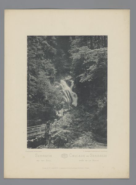 Editor: Here we have "Cascade de Garet", an etching and engraving print by Maxime Lalanne. The scene feels very enclosed, almost like a secret grotto. The stark contrast of light and shadow makes the waterfall the indisputable focal point. How do you interpret the cultural symbols and visual cues present in this landscape? Curator: This image evokes a powerful Romantic sensibility, doesn't it? The waterfall isn’t just water; it symbolizes nature’s overwhelming power, perhaps even a cleansing force. Think about the etymology of the word "cascade"— it's about things "falling." What does "falling" water, the relentless and gravitational motion of a waterfall, mean to us as humans? Editor: That’s a good point. The idea of something constantly falling... I guess that can symbolize a loss of control? Or a journey downwards, like in mythology? Curator: Precisely. Consider the visual language Lalanne employs – the stark contrast between the luminous water and the dark, jagged rocks. Do you notice how your eyes travel within this contrast, from shadow to light, back and forth? This visual duality might represent the human struggle against an indifferent, powerful nature. Think of Romanticism’s fascination with sublime terror and awe. Editor: I do. It feels like there’s a vulnerability in positioning the cascading water – life itself – in the dark embrace of the rocks. Almost as if nature both gives and takes away. Curator: And those trees at the top – are they watching, observing the scene? Landscapes, through history, have also held cultural symbolism tied to specific locales. In this landscape, the human drama unfolds within a natural theater. Lalanne’s choices tap into something timeless about our relationship with nature’s grandeur and its inherent dangers. Editor: It’s fascinating how one image can convey so many layers of meaning when you look at it through the lens of symbolism. Curator: Indeed! It encourages us to remember the persistent echoes of cultural memory embedded within visual forms.