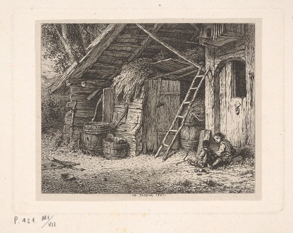 Editor: Here we have John Taylor Arms’ etching, “The Pig Pen,” created sometime between 1936 and 1940. The detail is remarkable, and the scene has a stark, almost melancholy feel to it. What do you see in this piece? Curator: Beyond the undeniable technical skill, I see a quiet commentary on rural America during the Depression era. Consider the date – mid to late 1930s. This wasn't a period of idyllic pastoral scenes. Editor: So you're saying the choice of subject, this dilapidated structure, is significant? Curator: Precisely. It begs us to ask: who occupies this space? How might this image reflect the societal and economic pressures that disportionately affect certain communities? It may speak of a disconnect between land and the promise it held, a crisis that goes well beyond what meets the eye. It's a seemingly simple scene, yet rich with complex social implications. Editor: I didn’t consider it beyond the pure aesthetic. The texture of the wood and light… Curator: Of course, appreciating the artistry is important, but we should always challenge ourselves to situate art within its relevant sociopolitical framework. It forces us to contend with difficult conversations and, hopefully, arrive at a greater historical literacy and awareness of persistent injustices. Editor: That's a powerful way to look at it. I’ll definitely remember that approach going forward. Curator: Glad to expand your view. Keep interrogating art—it will give as much as you put into it.
