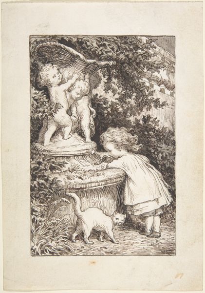 Lorenz Frølich made this etching, "Child Climbing a Chair to Reach for a Kitten," sometime in the 19th century. It’s a charming scene, but the image's focus on domesticity and childhood hints at the values of the time. Made in Denmark, it reflects the era's emphasis on the nuclear family and the idealization of childhood innocence. Notice the details – the well-furnished room, the child's dress, the presence of a pet rabbit. These visual codes suggest a comfortable, middle-class setting. The rise of the bourgeoisie in 19th-century Europe led to new social structures and cultural norms, including an emphasis on private life and the importance of raising children in a nurturing environment. The kitten, an object of the child’s desire, could be said to stand in for the rewards of domestic life itself. To get a deeper sense of the context, we can examine children's literature, conduct demographic research, and consult historical records to understand what childhood meant in 19th-century Denmark. It’s through this kind of historical investigation that we can understand the artwork's subtle commentary on the social values of its time.