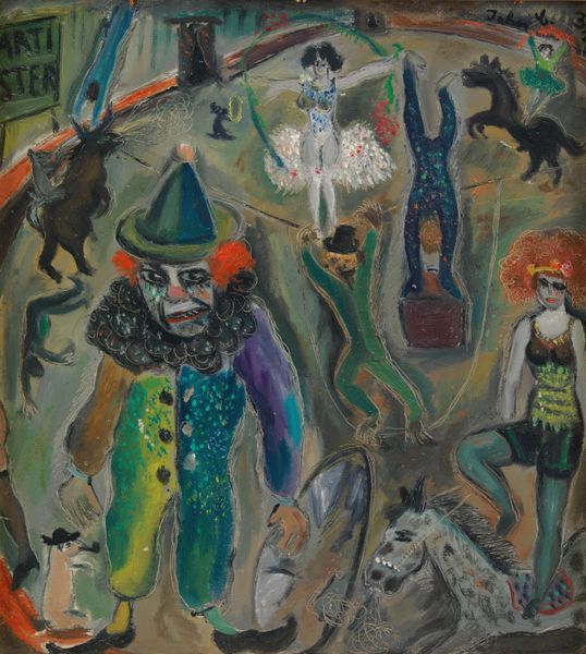 Editor: This is George Bellows' "Tennis Tournament," painted in 1920. It’s an oil painting, and it strikes me as a study of leisure, with an almost dreamlike quality in the way the figures blend together. What's your perspective on this work? Curator: Well, looking at this from a historical perspective, it reflects a very particular moment in American social history. Bellows, known for his gritty urban scenes, here depicts a leisure activity associated with the upper classes. How does this painting either reinforce or challenge those class divisions in your opinion? Editor: I hadn't thought of it in terms of class, but I see what you mean. The figures are very loosely rendered. Do you think this suggests a particular viewpoint or critique? Curator: Exactly. The Impressionistic style is significant here, but I question how it is used by Bellows. Consider that many artists at the time were experimenting with depicting modern life and the changing social landscape, where the art world became dominated by institutional displays. What institutions made such work 'important'? Editor: I guess it would be galleries or private collections? Is that why the brushwork feels so energetic and unfinished – is Bellows capturing a sense of fleeting moments of modernity to reinforce institutional taste? Curator: It could be argued so. This painting places itself firmly within a narrative about leisure, access, and societal values, as reinforced by major public acceptance. Do you feel it romanticizes or critiques that world? Editor: I'm beginning to see that maybe it’s not as straightforward as I initially thought. It's making me think about how art reflects not just what is seen, but also the structures behind that vision. Curator: Precisely. It’s about the choices made, and the context in which those choices were valued. An artwork's importance can be socially constructed through displays as much as it’s intrinsically “valuable.” Editor: It gives me a lot to think about.