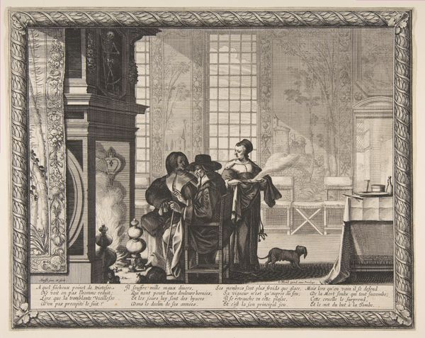 Gabriel de Saint-Aubin created this etching called "Les Nouvellistes," which translates to "The Newsmongers" or "The Gossipers" in eighteenth-century France. In Saint-Aubin’s time, Parisian society was rapidly changing, with the rise of salons and public spaces where news and ideas were exchanged. In this small, yet bustling image, we see a group of figures gathered in what appears to be a social setting, perhaps one of these new salons. The composition draws us into their world, a world of lively conversation and the dissemination of information, which was typically exclusive to the upper classes. Saint-Aubin captures a sense of immediacy, as though we are overhearing fragments of conversation. The artist’s technique adds to this effect, with quick, spontaneous lines that evoke the energy of the scene. "Les Nouvellistes" captures a moment in time when information and social interaction were becoming increasingly intertwined, shaping the cultural landscape of Paris and the lives of those within its elite circles.