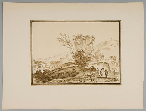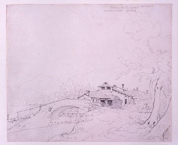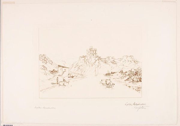 Editor: This is Turner's "Norham Castle, on the Tweed," and it looks like a quick sketch, perhaps a preliminary study. What kind of imagery do you see at play here? Curator: The castle, almost dissolving, represents a fading power, a romantic ruin. Note how Turner sets it against the enduring landscape. Does this suggest to you a commentary on the fleeting nature of human ambition versus the eternal persistence of nature? Editor: That's a really interesting way to look at it. I hadn't considered the castle as a symbol of fleeting power. Curator: Think of the light, too. It's not just illumination; it's symbolic, hinting at the passage of time, the golden age receding into memory. What does this light evoke for you? Editor: It makes me think about how history and memory can be both beautiful and melancholic. Thanks, this was so insightful. Curator: Indeed. Art invites us to contemplate the layers of meaning woven into the simplest of forms.