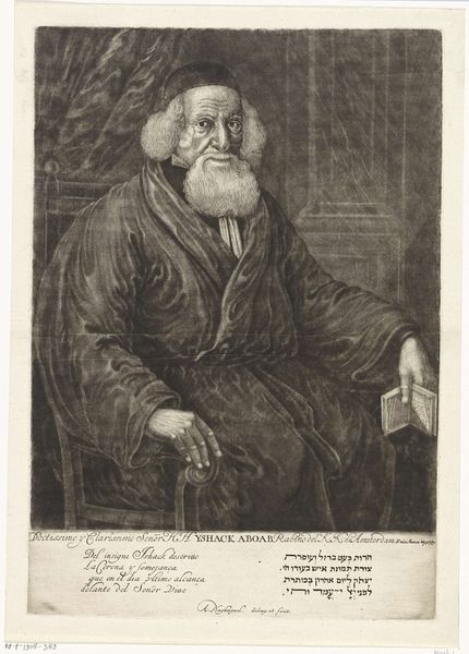 Editor: This etching, "Jan Lutma, Goldsmith" by Rembrandt, feels so intimate. What symbols do you see embedded within this portrait? Curator: Notice Lutma’s tools arrayed on the table and the light filtering through the window. They speak to the enduring power of craft, connecting the artisan to a lineage of skill and ingenuity. Lutma becomes an emblem of tradition. Editor: So, the tools aren't just objects, but links to history? Curator: Exactly. Rembrandt captures Lutma's presence, suggesting his personal history, but also the collective history of goldsmiths and the cultural memory of the trade. What do you think Rembrandt wanted to convey about the importance of craft? Editor: I see how the imagery elevates Lutma beyond just an individual. It's a powerful connection to the past. Curator: And a reminder of how skills and traditions shape our identity.
