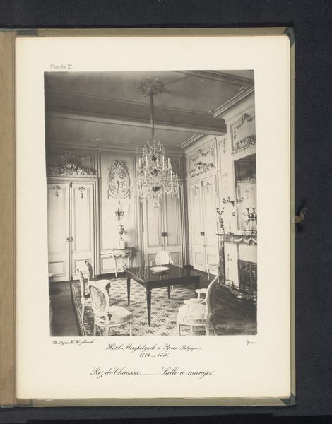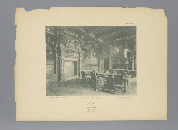 This photograph by H. Waeles captures the office of the civil status alderman in Brussels' town hall. The scene is dominated by symbols of authority and order, from the rigid symmetry of the paneled walls to the orderly arrangement of chairs around a central table. Consider the motif of the chair. It’s not merely a seat but a symbol of power, echoing the thrones of antiquity. Think of ancient Egyptian pharaohs or Roman emperors, their authority visually reinforced by elaborate chairs and thrones. The chair, therefore, transcends its functional purpose, carrying with it a weight of historical and cultural significance. Here, the chairs arranged around the table suggest a space for discussion and deliberation, yet also define hierarchy. Such arrangements tap into our collective memory of power dynamics, triggering subconscious associations with governance. The very architecture and furniture serve to reinforce the alderman's authority, engaging viewers on a deep, subconscious level. Observe how this symbol of authority has recurred, transformed, and continues to carry echoes of its past through history.