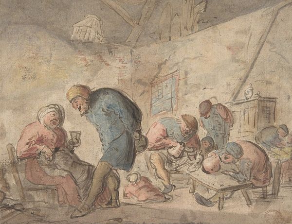 Adriaen van Ostade created "A Room in a Cottage" using oil paints, a traditional fine art medium. The painting is a study in contrasts, both in color and texture. Notice the dark, coarse strokes that define the interior of the cottage, compared to the smoother, lighter touches that bring the figures to life. The artist's technique gives a sense of depth, and the interplay of light and shadow emphasizes the hard conditions of rural life. Van Ostade, who lived in Haarlem, engaged with the techniques used by the Dutch Golden Age painters, while also showing the lower class, a subject which was frequently present in his work. By focusing on the living conditions of common people, and the way in which these subjects are rendered through oil paint, Van Ostade challenges the traditional hierarchies between fine art and everyday experience. It reminds us that materials and making processes are always rooted in particular social and cultural contexts.