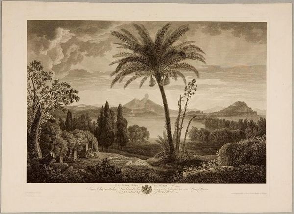 Paulus Lauters created this view of the Dano Valley in Bantam using etching and drypoint. Observe the palm trees rising proudly amidst the landscape, symbols of fertility, victory, and eternal life. The palm has its roots deep within cultural memory. In ancient Egypt, it was a symbol of immortality, while in Rome, it represented victory and triumph. Consider its presence here, in a distant valley, bearing witness to the cyclical patterns of life and nature's enduring power. This image is not just a landscape; it is a canvas where nature speaks, reminding us of the perennial dance between humanity and the world, an echo of our enduring quest for meaning and connection.