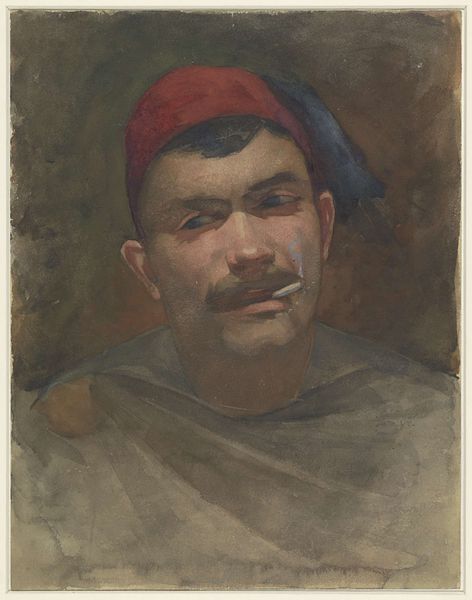 Editor: This is "A Shepherd," a study for "Il Voto" by Francesco Paolo Michetti, created around 1883 using tempera, pastel and other drawing media on paper. I am struck by the textural contrasts between the roughly sketched background and the more detailed rendering of the figure, especially in the shepherd's hat. What aspects of its composition stand out to you? Curator: The interplay of light and shadow across the shepherd's face is quite masterful. Note how Michetti uses subtle gradations of color to define the planes of his face, capturing a sense of weathered character. The rapid, almost scribbled, lines defining the collar create an interesting tension with the detailed attention given to his face and cap. What is your interpretation of that dynamic? Editor: I see how that tension amplifies the figure's sense of presence! So it's not just about depicting the shepherd realistically, but also about highlighting his…humanity? The roughness calls attention to itself. Curator: Precisely. The materiality is very much on display here. This visible rendering underscores the immediacy of the creative act and the weight of existence etched in this man's features, his clothing. Did you notice the subtle highlights across his clothing which creates movement to an otherwise muted palette? Editor: Yes, it seems the quick strokes draw focus towards the more defined, shadowed areas, contrasting it further. I originally thought that the rapid strokes was a sketch; it wasn’t as carefully considered as other portions, but that was its intent. Thank you for pointing that out. Curator: And what have we learned about our assumptions by considering his aesthetic decisions so closely? Editor: By analyzing the interplay of brushstrokes and shadowing, it moves beyond being just a portrait of a shepherd. Curator: Indeed, through meticulous design we are also confronted with considerations of representation and being.
