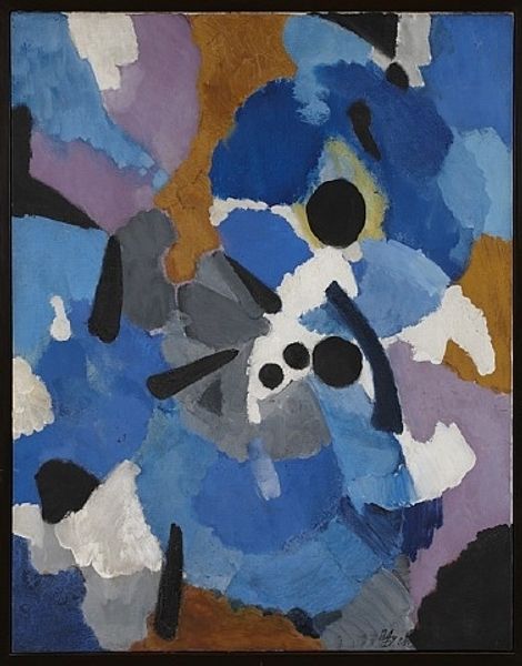 ‘My paintings have no titles because I do not wish them to be considered illustrations or pictorial puzzles’, Still wrote. ‘If properly made visible they speak for themselves.’ In a letter discussing this work, he explained that the red at the lower edge was intended to contrast with and therefore emphasise the depths of the blue. He saw the yellow wedge at the top as ‘a reassertion of the human context - a gesture of rejection of any authoritarian rationale or system of politico-dialectical dogma.’ Gallery label, November 2005