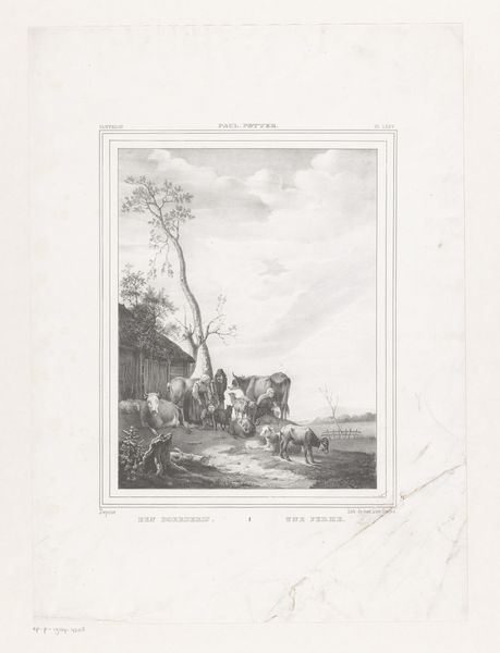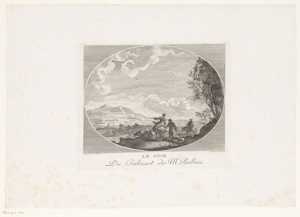 Curator: Johann Wölfle's "Man by a Fallen Hay Wagon in a Landscape," likely from the 1850s, captures a moment of apparent rural setback through the techniques of etching, drawing, and graphite on paper. Editor: My first thought? It’s heavy. The mass of the hay wagon and the weighty sky above really push down on that solitary figure. There’s a stillness and sense of waiting. Curator: Precisely, that stillness resonates when considering broader agricultural narratives. The accident potentially disrupts labor, bringing questions around agrarian hardship into sharp focus, especially in the mid-19th century, a period rife with anxieties concerning industrial encroachment and rural labor. Editor: I'm drawn to how the material – paper, graphite, and the etching process – contributes to this sense of weight. The textured shadows created by the etching build up the volume of the hay and even the clouds, making the toil palpable. We see evidence of labor at multiple stages. Curator: It also invites discussion about the representation of masculinity within such labor contexts. Consider the social roles thrust upon rural workers and what implications arise from unexpected delays in expected output and income. Editor: Absolutely. The horses standing nearby highlight animal labor, a power relationship often ignored. We see a dependency and disruption simultaneously: the wagon’s breakdown is theirs too, underlining their role within an economic ecosystem. Curator: The placement of the lone man in relation to the downed hay wagon invokes a feeling of powerless isolation. Does he consider an alternative future given his current predicament? Editor: The landscape seems both indifferent and implicitly part of this dynamic, doesn't it? Its passive participation in the economic cycle reinforces that connection of resources to markets. Curator: Indeed, reflecting on this scene urges one to rethink historical romanticism by weaving contemporary issues. How, even in stillness, the gears of material struggle still continue to shape the social dynamic. Editor: Seeing the artist's use of etching in combination with other materials brings the labor required for its creation into view. The act of observation can transform one's perceptions regarding materials, labor, and context.
