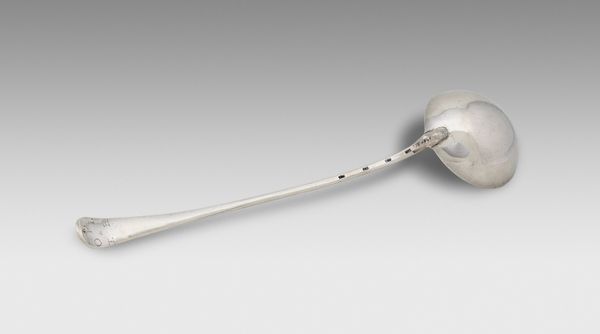 Curator: Look at the streamlined elegance of this object. "Spoon," created between 1903 and 1904 by Charles Robert Ashbee. Crafted from silver and metal, it resides here at The Art Institute of Chicago. Editor: My immediate reaction? Delicate yet strong. The curve of the handle leading to the almost floral detail at the end is stunning. What's interesting to me is how such a small object holds such sophistication. Curator: The piece beautifully exemplifies the Arts and Crafts movement. Ashbee was deeply involved in the Guild of Handicraft, prioritizing handmade objects that offered an alternative to mass-produced items from the Industrial Revolution. Consider the spoon's form; it speaks to function while being inherently sculptural. Editor: Exactly! It’s fascinating how something so quotidian becomes elevated. Its functionality underscores social status. I mean, who owned this? What sort of context made the production and ownership of such an object possible? This wasn’t just for stirring tea. This spoon served as an ideological statement. Curator: Its style is decorative, and I read its sinuous lines through the lens of Art Nouveau's influence on the Arts and Crafts movement. It transcends its practical purpose and attains almost symbolic weight. We can trace these stylistic tendencies and the craftsmanship present to see influences across cultural movements and into postmodern object theory. Editor: I like the comparison with the object theories. More importantly, who would have seen it, held it, and how does it play into ideas about gender roles or class structures prevalent at that time? It certainly provides insight into domestic culture and rituals, doesn’t it? These little things always tell much larger stories about life at the beginning of the 20th century. Curator: Indeed, the spoon exists not only as a testament to craftsmanship but also as a conduit for understanding aesthetic preferences and their intrinsic symbolic properties. Editor: I appreciate having the chance to really reflect on how even an everyday object embodies such potent historical and societal cues. Curator: It seems that its aesthetic construction gives insight into so many diverse modes of artistic and sociological inquiry.