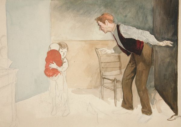 Editor: So here we have Norman Rockwell's "Boy and Shopkeeper; Gone on Business" from 1960, rendered in oil paint. There's such a clear narrative unfolding—I can almost hear the screen door slam! What do you make of Rockwell's storytelling in this piece? Curator: Rockwell's work operates on nostalgia, doesn’t it? He presents an idyllic vision of small-town America, one deeply implicated in ideas about labor, leisure, and access to both. This painting, with its "Gone on Business" sign, suggests the intersection of work ethic and recreation, but for whom? Editor: I see what you mean. The shopkeeper looks like he’s ditching his responsibilities for a day of fishing. The boy seems to know the secret too. Curator: Exactly. And that’s where we need to ask some questions. Who has the privilege to simply close up shop and go fishing? How might factors such as race and gender impact such leisure time? The rosy-cheeked depiction elides other stories—histories of those systematically denied these same freedoms and opportunities. Editor: So, by presenting this specific narrative, is Rockwell perhaps overlooking broader societal realities? Curator: It is possible to view it that way. Rockwell offers us a carefully constructed vision of Americana that may be both comforting and critically incomplete. While celebrated for realism, this art invites us to consider whose realities are validated and whose are omitted. Who isn't represented in this story of American life? Editor: That really reframes the painting for me. I hadn't considered it as a statement about social structures, but that lens opens up so much more to think about. Thanks! Curator: It's about understanding that art never exists in a vacuum; it reflects and refracts the world around it. I'm glad you’re thinking about this and asking difficult questions.