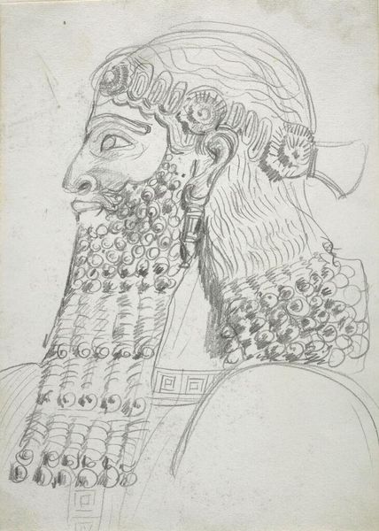Giuseppe Grisoni rendered this image of a "Porphyry Head (San Marco, Venice)" with pen and brown ink, heightened with white, over graphite on buff paper. The use of porphyry, a stone historically associated with royalty and power, underscores the sitter's status. The head likely depicts a figure of significant authority, and Grisoni's work reflects the 18th-century European fascination with antiquity and its artifacts. Venice, with its rich history as a crossroads of cultures, provides a fitting backdrop for this subject. The very act of sketching it allows us to contemplate the relationships between the original, the copy, and the cultural values each embodies. It invites us to reflect on how societies create and perpetuate narratives about power, identity, and history through artistic representation.