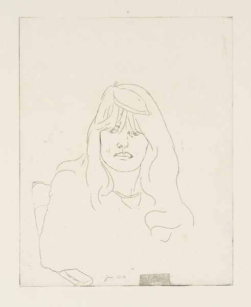 Curator: This is "Sue," a striking drawing by Barry Flanagan. Editor: My first thought? A little vulnerable, maybe a touch unsettling. The lines are so fragile. Curator: The piece invites us to consider the gaze, doesn't it? How Sue is positioned, how we are positioned as viewers, and the power dynamics at play. Flanagan, throughout his work, interrogates the objectification of women. Editor: The vulnerability, I think, comes from that direct stare, but also the incompleteness. It feels like a fragment of a thought. Curator: Exactly. It disrupts traditional portraiture, leaving space for the subject's interiority. It gives her agency, even within the confines of representation. Editor: Hmm, I like that. It's less about capturing Sue, and more about suggesting her. Food for thought.