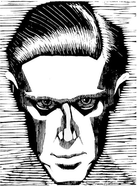 Curator: Well, hello there. Here we have Ernst Ludwig Kirchner’s 1930 woodcut, “Profile Head (Self-Portrait).” A stark and striking image. Editor: My initial gut feeling is, unsettling. It's so graphic, almost aggressively so, with those sharp lines and high contrast. Is he biting on a matchstick? Or some sort of twisted nail? Curator: I see where you are coming from; this certainly challenges the traditional notions of a self-portrait. He has this penetrating gaze and, yes, that is a cigarette. It certainly makes a strong, somewhat alienated statement about the artist himself. What do you make of the figure reflected in the eye? Editor: Ah, now that's interesting. Within the eye, it looks almost like a dream, another self or muse contorting in there like a captive… perhaps his anxiety reflected in an external object, maybe as a creative personification inside the creator's eye. It is almost like it suggests we are not in control of what we choose to imagine... like an impulse. Curator: Exactly. That tension you perceive comes from Kirchner’s own internal struggles. His experiences during World War I deeply affected him. After suffering a mental breakdown, his art started reflecting a darker view of the world, especially in regards to modern industrial society. Editor: I can totally sense the feeling of psychological drama. Kirchner’s use of woodcut enhances the piece’s expressive power as the texture accentuates the rawness, giving it this emotionally agitated and intense quality. The social critique feels raw and deeply embedded, does this type of creative visual practice become almost like therapy in times of alienation? Curator: Precisely. Art as a visceral outlet, transforming personal pain into a powerful commentary. Woodcut’s inherent qualities--the sharp cuts and stark contrast-- perfectly express the anxiety and fragmentation of the era. What a truly captivating image. Editor: Absolutely, an interesting portrait of an era as much as of himself; leaving us questioning what lies beneath our own self-reflections, and, like, if you zoom into your iris...
