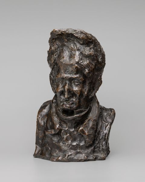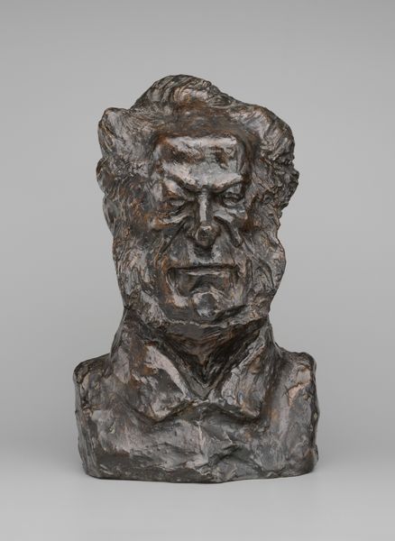 Editor: This is Auguste Rodin's "Head of Balzac," a bronze sculpture made between 1887 and 1980. The texture seems so raw and unfinished. How should we understand the purpose and the making of the art piece, given its period? Curator: That rawness, as you call it, is key. Think about Rodin's project. He was deeply involved in redefining public monuments. The Balzac commission, which this is a study for, was initially rejected. What does that rejection say about the artistic establishment's expectations at the time? Editor: That it challenged their traditional sensibilities. This wasn't the clean, heroic sculpture they were used to? Curator: Exactly. The Balzac commission aimed to celebrate a great writer, but Rodin did not seek a pure likeness. Instead, his goal was to depict Balzac's inner life and creative spirit. It shows Rodin grappling with representing genius. The politics of imagery played a central role in art’s function. Editor: So the rough texture and unconventional style are part of a statement? How much was Rodin commenting on societal expectations of artists? Curator: A great deal. He challenged the norms, sparking public debate about art's role in representing cultural icons. He wasn't merely crafting a statue, he was provoking a conversation. The way we display this piece also speaks to our present moment and a more modern expectation for art in a gallery. Editor: So the sculpture's journey – from commission, to rejection, to eventual acceptance – really underscores how art and its reception are shaped by cultural forces? Curator: Precisely. And how even a seemingly solitary artwork exists within a web of social and institutional relations. Editor: That reframes my initial impression entirely. It's fascinating how understanding the historical context changes how you see the sculpture. Thanks!
