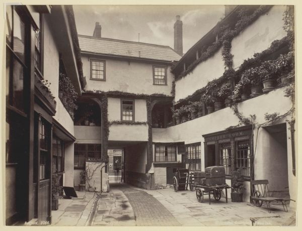 Curator: Here we have “Two Views of Town Houses in Blois,” a gelatin silver print created by Médéric Mieusement, sometime between 1875 and 1900. Editor: It's quite charming! I’m immediately drawn to the contrasting textures – the rough stonework juxtaposed with the smoother plaster, and of course, the geometry of the windows. It almost feels like a stage set. Curator: Notice how Mieusement captures the very fabric of everyday life through his mastery of the gelatin silver process. He shows us the materials of the buildings, and therefore, of the city itself. Think about the labor involved in quarrying, transporting, and working that stone. It speaks volumes about Blois's economy and societal structure at the time. Editor: Absolutely. The architecture displayed provides an intriguing glimpse into the city's socio-economic strata and urban evolution. The presence of these ancient dwellings and the people within are telling stories of life during this era. And I love that the perspective, a seemingly random slice of city life, brings an unexpected democratic eye to the era. Curator: And consider the evolution of photographic technology itself. The accessibility of gelatin silver prints democratized image production and consumption. These images became not just artworks but also a kind of social documentation, circulating ideas about architectural styles and ways of living. Editor: Indeed. These were not only beautiful artifacts in themselves but powerful vehicles that promoted distinct representations of civic pride and culture. Curator: Examining it this way invites us to see the city not merely as bricks and mortar but as a nexus of social, economic, and technological forces. Editor: Well said! I see it now, beyond just the aesthetic appeal. Mieusement is really highlighting the narrative etched into the buildings' structure themselves.