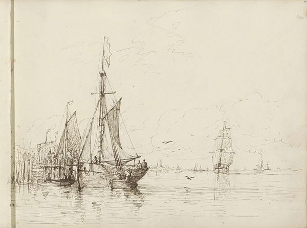 James McNeill Whistler made this etching, The Turret Ship, during a time of rapid industrial and technological change in England. Whistler was an American expatriate, living in London at the time. He was interested in how these changes were affecting society, and he used his art to explore these themes. This print is from the late 19th century, a period when the British Navy was a symbol of national power and technological prowess. The image showcases a variety of ships, including the titular turret ship, a relatively new and controversial design at the time. Whistler's choice to depict this subject matter reflects the contemporary fascination with naval power and the ongoing debates about ship design and military strategy. It suggests an effort to capture the essence of modern maritime life and Britain's role as a global naval power. Historians use a range of resources, from naval archives to newspaper articles, to reconstruct the complex social and technological context of works like this. Whistler’s etching reminds us that art is always shaped by the specific social and institutional conditions in which it is made.