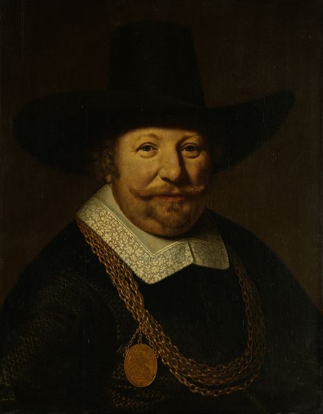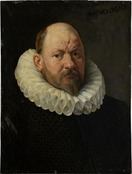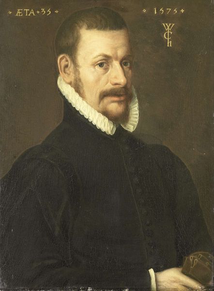In the Städel Museum, you'll find this oil on wood panel, a half-length portrait of a young man by an anonymous artist. The somber palette, dominated by blacks and browns, is punctuated by the stark white ruff and the warm flesh tones of the subject's face. The composition is stable, almost rigid, with the subject posed symmetrically, emphasizing the geometric forms of his clothing and hat. The artist masterfully employs contrasting textures, from the soft, feathered edges of the ruff to the smooth, reflective surfaces of the buttons. This play of texture complicates the otherwise formal composition, inviting closer inspection and challenging the viewer to reconcile these disparate elements. The subtle modeling of the face, in contrast to the flatter rendering of the clothing, creates a sense of psychological depth. Ultimately, this portrait is not merely a representation of an individual, but a study in contrasts and textures that reflects the broader cultural tensions between formality and expression, restraint and freedom. Each element functions as a signifier within a complex semiotic system, inviting ongoing interpretation.