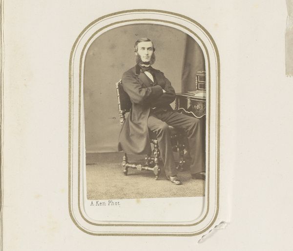 Editor: Here we have Eugene Guérin's "Portret van een meisje," a photograph dating from between 1875 and 1885. What strikes me is the formal pose and almost melancholic air of the sitter. How do you interpret the imagery used here? Curator: Notice how the artist deliberately positions the sitter in the center of the composition, using shadow and light. The portrait is not merely about representing this particular individual, but rather functions as a symbol of broader cultural ideals around gender, status and visibility. Photography's accessibility at this time, remember, began democratizing portraiture in fascinating ways. Editor: So the very act of taking a photo was symbolic? Curator: Precisely. It signifies the subject’s arrival into a certain social stratum and projects aspirations about future agency and authority, a relatively modern aspiration in that historical period. Also, the chair, draped cloth, even the sitter's apparel carry encoded social signals related to power and respectability. We can see these cues echoed throughout similar photographs during this time. What assumptions might we now bring about this figure, based on these conventional signs? Editor: I see what you mean; I'm projecting an entire narrative of respectability, one that probably overlooks a far more complex reality. Curator: Indeed. It speaks to how cultural memory and expectations become encoded within such images over time. These photographic "portraits" act like mirrors reflecting both then and now. Editor: I never considered how something that appears straightforward as a portrait photograph could contain such layers of meaning. This has given me a fresh appreciation for understanding imagery as cultural symbolism!