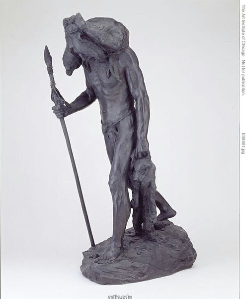 This bronze sculpture of Diana and a Hound was created by Paul Manship. Note how the artist masterfully captures a sense of motion, freezing it within the static medium of bronze. Manship emphasizes smooth, flowing lines in Diana's body and the hound’s musculature, suggesting swiftness and agility. The sculpture's composition is structured around diagonals: the raised bow and Diana's outstretched limbs create dynamic lines that intersect, energizing the piece. The hound, lying low, provides a grounding horizontal axis, adding balance to the composition. This interplay of horizontal and diagonal lines is not merely decorative; it destabilizes our perception by blurring the line between movement and stillness. The patinated bronze surface, with its varied hues, enhances the sculpture's tactile quality and depth. Manship's Diana is not just a representation but an exploration of form and motion. It prompts us to consider how sculptures can manipulate our spatial understanding, challenging conventional notions of stasis.