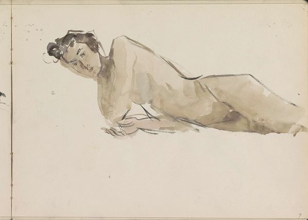 Editor: This is Isaac Israels’s "Standing Female Nude," probably done sometime between 1915 and 1925. It’s a pen-and-ink drawing. What strikes me is how vulnerable the pose feels. How do you see this piece? Curator: This image allows us to think about the male gaze, particularly within early 20th-century European art. How does the artist, as a man, depict the female form, and what does it tell us about power dynamics during that time? Are we, as viewers, complicit in this gaze? Consider the implications of realism – is this 'realism' merely a reflection of societal norms and expectations imposed on women? Editor: That’s an interesting perspective! I was mainly focused on the model herself, but what you say makes me rethink it. How does this compare to earlier depictions of nudes? Curator: Prior depictions often idealized the female body. Here, there’s an attempt at realism, but does it challenge or reinforce objectification? Consider, for example, how impressionism might overlap with early photography in their influence on this new vision of representation, but also of its own political stance. I encourage viewers to also consider this nude within Israels’ broader artistic production which focuses on a new rendering of reality through informal poses and fluid strokes, even exoticized subjects, and working women from fashion milieu. What do those choices tell us about how he situates women? Editor: That adds a whole new dimension. Thanks; I’ll definitely keep that in mind. Curator: Absolutely! It's a constant dialogue and reassessment. Looking through an intersectional lens encourages critical examination, allowing for more nuanced comprehension of not only the artwork, but of society itself.