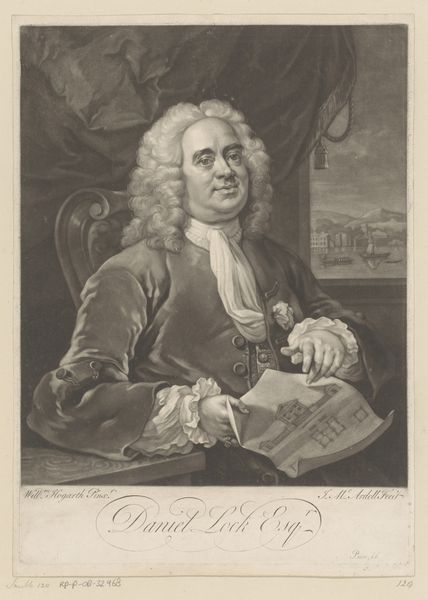 This is William Hogarth's engraving of Martin Folkes. Here, we witness the visual language of 18th-century British society, where identity was meticulously constructed and performed through dress, pose, and accoutrements. Folkes, a prominent figure in the Royal Society, is depicted with the markers of status: the elaborate wig, refined clothing, and a backdrop that hints at intellectual pursuits. Hogarth, known for his satirical eye, both celebrates and subtly critiques the elite circles of his time. It is interesting to consider the gaze within this portrait – how Folkes, as a man of science and privilege, might have viewed himself, and how Hogarth, as an artist navigating the complexities of class and patronage, interpreted that self-image. We are left to wonder, what does it mean to capture an individual, when that individual is so consciously performing a role? In the end, the print is more than a likeness; it's a reflection of the societal values and the artist's own commentary on those values.