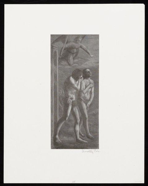 Curator: Christian von Mechel created this print titled "The Tomb of Madame Langhans." The composition immediately captures attention. Editor: It's quite striking. The stark contrast between the dark tomb and the illuminated figure evokes a powerful sense of transition or even rupture. The tear in the image plane disrupts the somber scene. Curator: Indeed. The way von Mechel employs line and shadow creates an illusion of depth within the frame, emphasizing the sculpted figure emerging from the fractured tomb. The serpent near the skull adds another layer of symbolic language to the piece. Editor: Symbolism certainly abounds. Looking at the historical context, one can consider the social pressures around commemorating the deceased in the 18th century. The idealized figure suggests a public performance of grief, conforming to societal expectations. The tomb becomes a stage. Curator: An apt observation. The figure's positioning and the surrounding ornamentation create a tension between the personal loss and the public display. It speaks to the complex relationship between life, death, and representation. Editor: It's interesting how the formal elements of the piece work in service of this historical narrative. It leaves one to contemplate the ongoing dialogue between personal and public mourning.