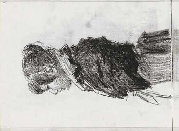 Editor: So, this is "Young Woman with her Arms Folded," a charcoal drawing by Isaac Israels, likely made between 1886 and 1934. There's something quite raw and immediate about it. The figure seems so vulnerable. What stands out to you in this piece? Curator: Well, consider the historical context. Israels was working in a period of increasing social awareness. Quick sketches like these often served as preparatory studies, but they also capture a fleeting moment of everyday life. Think about how the rise of photography was influencing artists. Editor: Ah, that makes sense. So the loose lines and unfinished feel could be a reflection of that influence? Curator: Precisely. Artists were grappling with how to represent reality in ways that photography couldn't. It’s less about perfect representation and more about capturing an essence. The pose, with arms crossed, speaks volumes about her social position, doesn't it? What social commentary might Israels be subtly conveying through this intimate portrayal? Editor: It does make me wonder if it's about her place as a woman in society, perhaps some discomfort or reservation? I hadn't thought of that before. Curator: The power of the work resides in its very immediacy. We see the artist grappling with form and emotion. That becomes the spectacle itself. Editor: I see what you mean. It’s not just about the woman, but about the act of observing and representing her, within a specific historical frame. Thanks for illuminating the context; it completely reframes my understanding. Curator: My pleasure. Considering the cultural and historical implications enriches our encounter with such a seemingly simple sketch.
