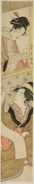 Ishikawa Toyonobu created this print, "Young Woman Walking on a Windy Day," using woodblock printing, a technique known as *ukiyo-e*. The materials and processes involved in *ukiyo-e* are fascinating, and deeply connected to the social context of Edo-period Japan. This wasn't just an individual pursuit, but a collaborative effort. An artist like Toyonobu would create the original design, which was then carved into separate woodblocks – one for each color – by highly skilled artisans. Paper, often made from the inner bark of the mulberry tree, was crucial. Finally, a printer would carefully layer the colors, bringing the image to life. The flat expanses of color and strong outlines were a direct result of this method. And *ukiyo-e* itself was a product of its time – affordable and accessible, reflecting the burgeoning urban culture and the lives of ordinary people. This print, like so many others, blurs the lines between art, craft, and industry, inviting us to consider the labor and expertise behind its creation.
