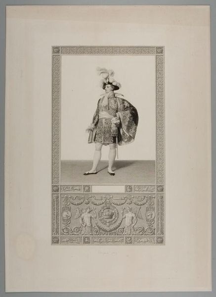 Editor: This is Louis Pierre Henriquel-Dupont's "Msgr. de Latil, Archbishop of Reims". It's quite formal. How does this image operate within the historical context of religious portraiture? Curator: It’s interesting how this print both upholds and perhaps subtly questions the power structures of the Church. The Archbishop is presented with great detail and regalia, yet within a somewhat restrained and decorative frame. Editor: Restrained how? Curator: It's not overtly opulent like some earlier portraits of religious figures. The setting is minimal, almost staged. Do you think this suggests a shift in the Church's public image, perhaps a move towards a more modest presentation? Editor: Maybe, a way to navigate social changes. I hadn't thought of it that way. Thanks! Curator: Indeed, it highlights the fascinating interplay between art, power, and societal perception.