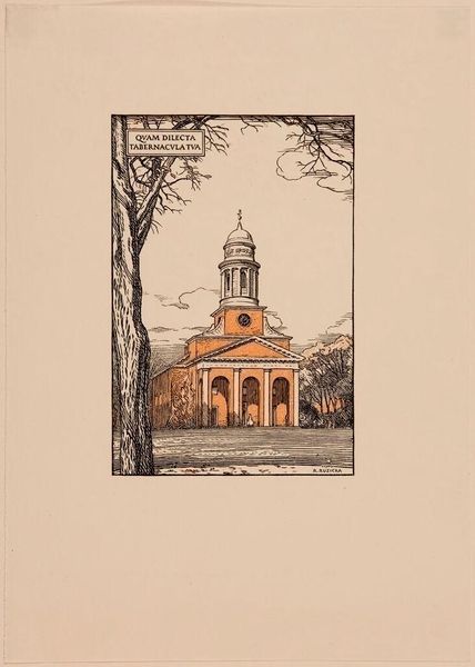Curator: Thomas Willoughby Nason created this wood engraving of Harvard Hall, using a block measuring roughly 8 by 6 centimeters. Editor: Gosh, it feels both grand and claustrophobic at the same time. All those bricks and the tower reaching up... Curator: Right, the print's material limitations—the use of wood, a relatively inexpensive medium—speak to Nason's intent to make art accessible, sidestepping traditional painting. Editor: And that tight composition, it’s like the building is almost exhaling history and ambition right at you. Like a memory insisting to be told. Curator: Indeed, and Nason’s labor-intensive engraving mirrors the slow, deliberate process of institutional knowledge production. Editor: It really makes you feel like you are there. Curator: So, from material conditions to emotional resonance, this little print contains multitudes. Editor: Precisely! It really got me thinking about my college years.