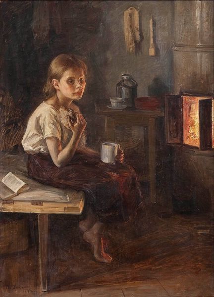 Albrecht Anker probably painted 'Girl Drinking Coffee' in the late 19th century, capturing a quiet domestic scene. Anker was known for his sympathetic depictions of Swiss rural life, and this work offers a glimpse into the world of childhood, gender, and class. Notice the girl's simple clothing and the humble setting, perhaps reflecting the values of the working class during a period of industrialization and social change. The act of drinking coffee was increasingly accessible to different classes. The girl's gaze is directed away from us, drawing us into her private world. While seemingly simple, the painting reflects broader societal expectations around childhood, domesticity, and the roles assigned to women in the 19th century. It reminds us to consider the daily rituals and experiences that shape our understanding of identity.