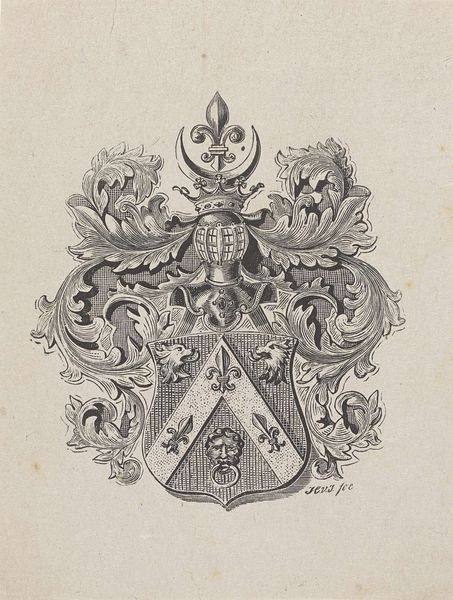 Curator: Here we have "Wapen van de familie Van Heussen", or "Coat of Arms of the Van Heussen Family," created between 1579 and 1584 by Hendrick Goltzius. It's an engraving, showcasing the heraldic imagery of the Van Heussen family. It's a testament to the graphic artistry of the Northern Renaissance, and a key example of the ways early modern Europeans expressed kinship, identity, and authority through visual means. Editor: My first thought? Serious business! That eagle on top is all puffed up with self-importance, and those geometric shapes feel almost like encrypted secrets. Is it me, or does old family money always exude a certain... intensity? Curator: The intensity comes, in part, from the very precise visual language of heraldry itself. The careful rendering, using etching, engraving and penwork. The shield is divided into four parts, or "quarterings," and each contains unique symbols: diamonds, heraldic roses each with a unique meaning associated with family history. The crest above, with the fierce eagle, is particularly interesting. It indicates high military honor and leadership. Editor: Right! It's all very coded. And look at the way the foliage curls around everything – it’s almost claustrophobic. I imagine the family wanting to tightly enclose everything inside. Control. It does make you wonder, doesn’t it, what they were trying to project and protect in that era? Curator: Well, the late 16th century was a period of immense social upheaval and conflict, with political and religious wars sweeping across Europe. Families looked to their lineage and heraldry to assert legitimacy and status in uncertain times. A meticulously rendered coat of arms like this would have served as a potent statement. The location where it's now stored at the Rijksmuseum in Amsterdam also highlights the Dutch's deep interests in social structures of their past. Editor: You're right, seeing it now almost feels like glimpsing at a family's LinkedIn profile from the 1580s. It’s so visually arresting. Imagine this emblazoned on a flag or carved above a doorway…it really would broadcast a powerful message of pride and...well, maybe a bit of threat, too! Curator: Indeed. So, as we move on to the next artwork, think about the roles objects and symbols play in reinforcing social structures, and also, how institutions like museums help construct a collective cultural memory around family legacies. Editor: For me, I’ll keep wondering if that eagle ever winked. Or if maybe, just maybe, someone in the Van Heussen family had a wicked sense of humor hiding behind all that proper lineage.
