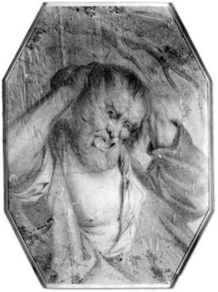 Karel van Mander III created this drawing of the Apostle Andrew with pen and brown ink, and grey wash on paper. The octagonal shape frames a figure immersed in contemplation. The composition is arranged around a play of light and shadow, drawing the eye across the textures of skin, beard, and fabric. The Apostle Andrew emerges from the shadows, with light catching the planes of his face and the folds of his garments. Van Mander uses chiaroscuro to heighten the drama of the scene. This reflects the influence of the Baroque style, known for its dynamic compositions and emotional intensity. The Apostle’s introspective gaze and furrowed brow suggest a moment of profound thought, in a composition of visual and symbolic weight. The drawing’s formal qualities invite us to consider the dialogue between artistic technique, religious narrative, and the construction of meaning.
