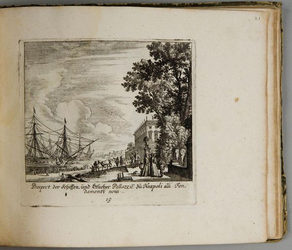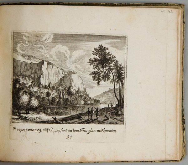 Curator: This is Melchior Küsel's "View of a Waterfall that Runs into the Aber See in Austria Two Miles from S. AEgidi," currently held at the Harvard Art Museums. Editor: It's striking how such a small plate, just about 11 centimeters square, evokes such a sense of dramatic scale. The waterfall dominates. Curator: Consider the period. Landscape prints like this served a vital role in shaping perceptions of place and nationhood, especially within the context of Hapsburg power. They also helped promote tourism and scientific interest. Editor: The rendering of the trees is so formulaic, almost like a stage set, yet the water is treated with a wonderful dynamism. The contrast draws the eye. Curator: That tension speaks to the way nature was being both idealized and commodified at the time, simultaneously a sublime force and a resource to be mapped and managed. Editor: It's an intriguing study in contrasts then, both visually and conceptually. Curator: Indeed, a reminder that even the most picturesque landscapes carry complex histories.