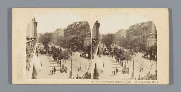 Curator: This remarkable photograph, attributed to Ferrier Père-Fils et Soulier, presents a "View of the Église Saint-Eustache and the Rue Rambuteau in Paris, France," dating roughly between 1860 and 1870. Editor: It's incredibly dense. My eye struggles to settle anywhere. The street is crowded, and the buildings seem to lean in. It feels claustrophobic, despite being an outdoor scene. Curator: That feeling of compression, I think, speaks volumes about urban development during the Second Empire. Haussmann’s renovation of Paris, intended to modernize and sanitize, also led to the displacement of working-class populations. Look at how the architecture dwarfs the individuals on the street—an unintentional but stark commentary on social stratification and power dynamics. Editor: And yet, we see a celebration of commercial life. A very specific sector with specialized skills making and selling materials, as evidenced in the covered stalls that border either side of the photograph. I'm interested in these infrastructures and what these arrangements afforded the people moving within and throughout them. Curator: True. Also consider Saint-Eustache itself. Its construction spanned over a century, reflecting shifting religious and political winds. The facade, classical, masks a Gothic interior—a kind of architectural palimpsest mirroring the layering of Parisian history and, really, French identity. Editor: And beyond its symbolism and context, let's appreciate the craft here. Think about the collodion process used, the exposure times needed to capture this bustling scene! Those blurred figures hint at the technological constraints that simultaneously enabled and shaped this view. These weren't fleeting snapshots. Curator: Absolutely, and that interplay between technological innovation and social change is a crucial lens. These advancements affected so many aspects of contemporary existence and how artists sought to express them through rapidly evolving media. Editor: Thinking about those processes and this moment, with everything that followed. The layers of decisions... Curator: It’s truly a confluence of materials, method, and social narratives converging. Editor: All of that is rendered beautifully into the frame of this photo.