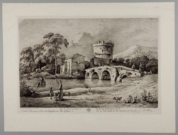 Editor: This is Jean Jacques de Boissieu's "Temple of Vesta," an etching. The delicate lines create such a tranquil scene. What do you see in the composition that stands out to you? Curator: Note how the artist employs the horizontal lines of the water to bisect the composition, creating a layered effect. The delicate etching technique enhances the textural contrast between the architectural ruins and the organic forms of nature. Are you noticing how this contrast guides your eye? Editor: I see that. The Temple seems less important than the natural elements. Curator: Precisely. The artist has prioritized the interplay of light and shadow across surfaces, rendering depth. The success of the etching lies in the artist's sophisticated manipulation of light and dark to evoke a mood of serene contemplation. Editor: That's a great observation. I hadn't considered the balance of light. Curator: Consider how the piece makes use of those elements as you examine other works, and you may be surprised at what you find.