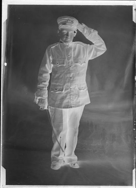 Curator: This photograph, "Untitled (portrait of a woman holding reading material)," is attributed to the Hamblin Studio. The image, a silver gelatin print, measures approximately 5 by 4 inches. Editor: There's something haunting about the inverted tones, isn't there? The woman seems almost ethereal, floating in that chair with her book. Curator: The photographic portrait became increasingly accessible in the late 19th century, enabling broader representation. Studios like Hamblin democratized portraiture, offering a means of self-representation beyond the elite. Editor: I wonder what she's reading. It's as if the book is a portal, and she's halfway into another world. The soft focus adds to that sense of mystery. Curator: Exactly. The Hamblin Studio captured a moment, a fragment of someone’s personal narrative within a larger societal shift in image making. Editor: The image has this quiet dignity, a certain stillness. It's a reminder of the power held within both image and word.