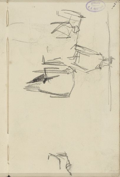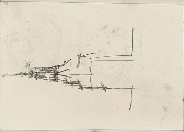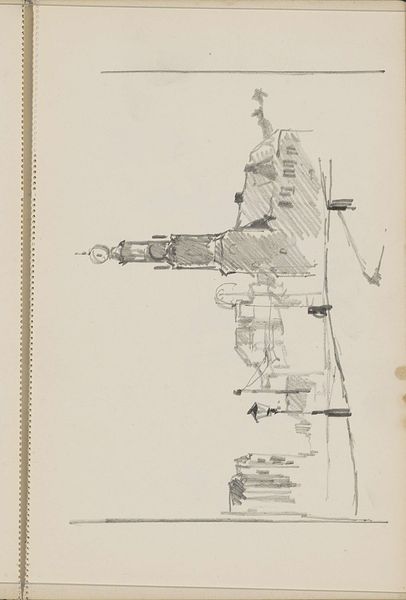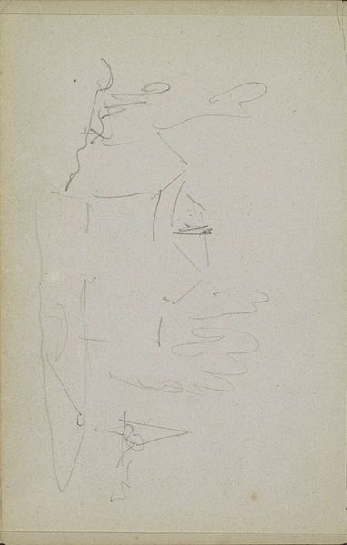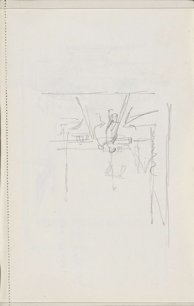 Editor: So, here we have Cornelis Vreedenburgh's "Streetlight Along a Road," a pencil and pen drawing from somewhere between 1890 and 1946. It's just a quick sketch, very minimal, almost ghostly. What strikes you most about this seemingly simple image? Curator: It's interesting to see the bare bones of a cityscape rendered with such economy. It feels like a moment of urban planning caught in transit. What kind of statement might Vreedenburgh be making about urbanization, even in this quick study? Was this a statement or was it practice? Editor: Maybe he’s exploring how new technologies, like street lighting, were changing the experience of the city? It definitely feels like an observation. Curator: Precisely. How does the drawing capture a sense of this era's shift in our societal use of public spaces with developments such as streetlight systems? Perhaps he’s investigating light, and our place beneath it, with the advent of electrical lighting? Editor: That’s fascinating. I hadn't thought about the social impact of street lighting beyond just safety, you know? Curator: Think about it. Public lighting expanded our usable hours within the cityscape, and allowed increased mobility across different socioeconomic strata. Consider where he placed this lamppost in relation to roads and buildings; it is an intimate placement. Could that be a representation of accessibility, as well? What is more, where is *this* specific placement coming from, given Vreedenburgh's historical status as someone from an upper class social position? Editor: I see your point. It’s more than just a streetlight; it's about access, class, societal shifts... and even more nuanced based on his identity. Thanks, I will have to ponder this. Curator: My pleasure! Hopefully these things will help shape a perspective of not only how people view art, but also why art like this exists in museums to begin with.