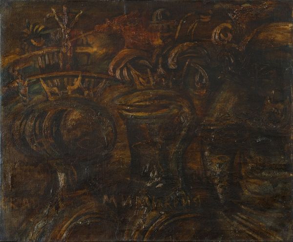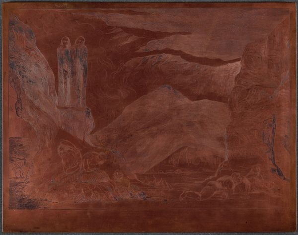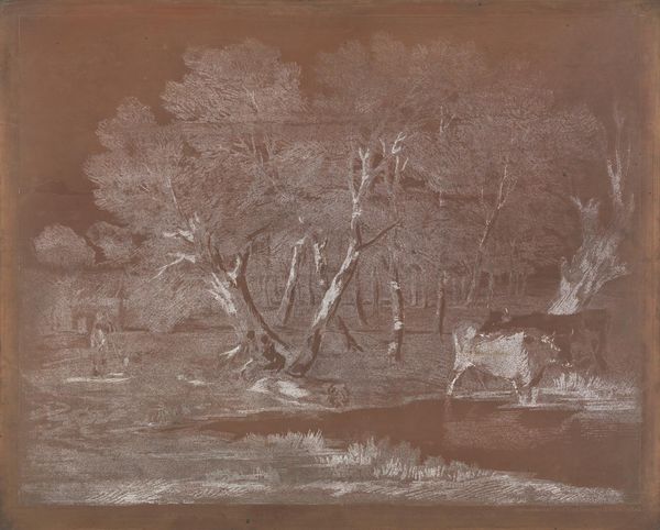 Curator: Washington Allston, born in 1779, painted this piece, "Landscape Composition," which now resides at the Harvard Art Museums. Given its medium, oil on canvas, and its dreamy quality, what's your initial take? Editor: Melancholy. It’s like a memory fading, a half-formed dreamscape. The muted tones and indistinct forms evoke a sense of longing, don’t you think? Curator: Absolutely. Allston was deeply invested in Romanticism, exploring themes of sublime nature and human emotion. This unfinished quality invites us to consider the instability of memory and the subjective experience of landscape. Editor: It's interesting that the artist chose these browns and subdued greens...I wonder if it was intentional to reflect the somberness of the historical times or some personal struggle. It almost whispers, doesn't it? Curator: Indeed. Allston lived through significant political and social upheaval. His art often reflects a yearning for a more idealized, perhaps even transcendental, vision of the world. Editor: It makes you think about how personal experience shapes the way an artist interprets and represents the world. Curator: Precisely. And how art, in turn, can shape our understanding of history and ourselves. Editor: It’s a painting that continues to reveal itself, layer by layer. Curator: A landscape of the mind, perhaps.