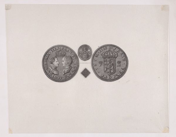Marcus Tuscher created this emblem, "Tuscher's Weapon," using engraving techniques. The image is dominated by a circular form, densely filled with heraldic symbols and inscriptions, all rendered in stark monochrome. The composition is structured around a central shield, flanked by ornate figures and surmounted by crests, each element meticulously detailed. The formal arrangement invites a reading through the lens of semiotics, where each symbol functions as a signifier. The shield, with its geometric divisions, the figures, and the text, combine to create a complex visual language. Tuscher challenges conventional representation. The lack of color and the emphasis on line work directs us to the underlying structure. This piece prompts us to consider how signs and symbols in art can convey meaning beyond mere representation.