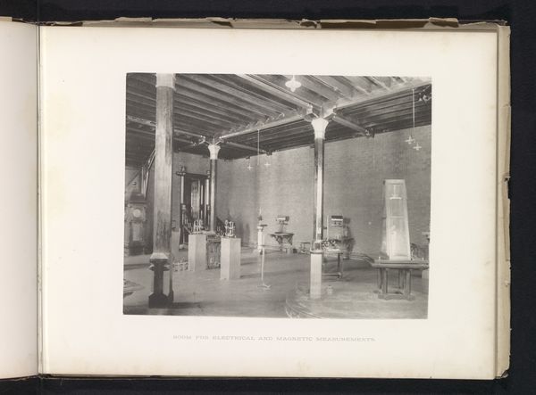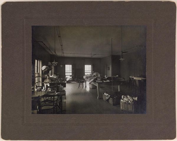 Curator: This photograph by Woodhead Studio, taken in 1904, is titled "Defectives, Epileptics: United States. Massachusetts. Palmer. State Hospital for Epileptics: 1904. Boiler house." Editor: It's stark, isn't it? A desolate quiet hangs in the air, despite the industrial setting. Curator: The composition really highlights the contrast between the massive, almost menacing boilers and the mundane details – the coat hanging on the wall, the framed pictures. Editor: Right! The visual grammar speaks of power and control, but those smaller elements, the human touches, hint at the lives within. Curator: It's a loaded image, inviting us to reflect on the lives of those within this institution. Editor: Leaving us to consider the stories held within those walls and the shadows they cast, even today.