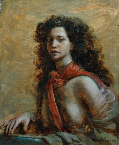 Barrington Watson's "The Ethiopian Woman" presents us with a figure draped in symbolic garb, inviting contemplation of identity and tradition. The red shawl immediately captures our attention; this echoes the togas of ancient Roman senators, a mark of status and power, here perhaps signifying heritage. Observe her thoughtful pose, hand to chin, reminiscent of classical depictions of philosophers and thinkers. Yet, she is adorned with distinctly African jewelry. The silver bracelets, similar to torques, recall adornments seen in ancient cultures, symbolizing strength. This juxtaposition reveals a dialogue between classical ideals and African identity. It echoes the renaissance, where artists sought to reconcile classical forms with contemporary concerns. Watson's art isn't just a depiction but an active negotiation—a continuous cycle of cultural rediscovery.