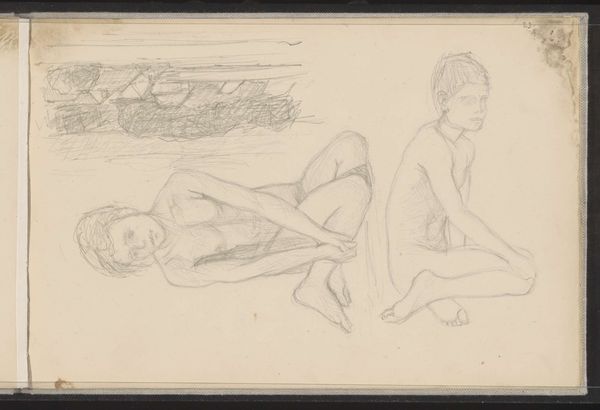 Curator: This curious piece is entitled "Twee reproducties van ontwerpen met naakte vrouwen en een portret van een zittende vrouw met een kat op schoot," dating roughly between 1900 and 1930, crafted using a combination of mixed media techniques. Editor: Immediately, it feels like a series of captured moments, disparate images arranged to create a sort of fragmented narrative. There's a certain intimacy and casualness conveyed through the collage aspect, despite the classical allusions in some of the figure studies. Curator: Precisely. The combination of photography, prints, and collage techniques points towards a deliberate act of curation and juxtaposition. Note how the anonymous artist arranges depictions of the female form – both idealized nudes and a more familiar, clothed domestic portrait – within this constructed space. The act of pasting becomes just as important as the individual images themselves. Editor: Indeed. The way they're presented—within these shaped cutouts— almost gives the individual images a gallery-like context within the broader artwork, adding another layer of self-awareness regarding representation and spectatorship. The very artifice of display is made visible, a meta-commentary on the consumption of images. Curator: Furthermore, considering its placement within a possible album or scrapbook format, one can infer a private viewing experience, something meant for personal reflection and perhaps restricted access. The artist's choices highlight contemporary notions of beauty, femininity, and the interplay between the public and private sphere during that era. Editor: I find myself drawn to the figure with the cat. The contrast between her casual domesticity and the overtly erotic nature of the other reproductions is quite striking. One wonders if it is making a statement about what "appropriate" viewing actually means and how it plays out at a private setting. Curator: The artist subtly pushes us to acknowledge the complexities inherent in observing and interpreting these assembled images. The artwork invites the viewer to piece together the unseen links of intimate lives reflected in the culture and visual aesthetics of the period. Editor: It's thought-provoking to consider this interplay of intimacy and exhibition. Curator: Precisely. It forces us to contemplate not just the images themselves, but also the act of collecting, curating, and the gaze through different epochs of representation.