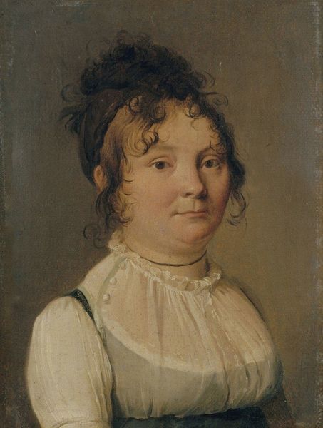 Editor: This is "Portrait of Queen Marie Sophie Frederikke" from 1767, painted with oil by Jens Juel. There's a certain vulnerability about her expression. I’m curious, what’s your read on this work? Curator: Well, what a glimpse into the powdered world of the late 18th century! For me, it’s more than just a pretty face. Think about the era: Rococo flirts with Romanticism, and here's Marie, right in the thick of it, but look closely; she seems almost…unsettled. Editor: Unsettled how? Is it the faint blush or maybe how her hair frames her face? Curator: Precisely! It is how the face is softly illuminated. Juel isn't just painting royalty; he's capturing a moment. Maybe a fleeting anxiety? Remember, queens had immense pressure. I imagine she’s grappling with what it means to be both a woman and a figure of immense power in a rapidly changing world. The dark background sort of hints at that complexity. Does the portrait say anything to you, viscerally? Editor: Now that you point it out, her eyes… They are definitely telling a story, one that's a little less about the crown and more about the person underneath. Curator: Exactly! The genius of portraiture, eh? It captures a bit of the soul. Jens allows us to reflect, across the centuries. That's the art that grabs me. Editor: Absolutely! Now I look at it through a new perspective. Thanks! Curator: My pleasure, a royal pleasure at that.
