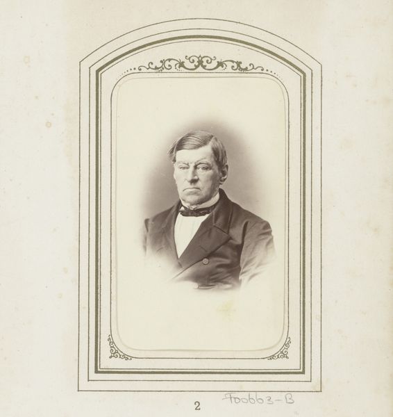 Editor: Here we have "Portret van Pieter Hendrik Suringar," a gelatin-silver print dating from 1880 to 1910. It’s a pretty straightforward portrait, but something about the sharp focus and tonal range strikes me. What’s your perspective on it? Curator: Looking at this, I’m drawn to the labor involved. Gelatin-silver prints required meticulous work—preparing the emulsion, coating the paper, the precise darkroom techniques…Consider also the social context: portrait photography was becoming more accessible, yet still a formal, constructed representation of identity. What do you think the choice of this photographic process communicates? Editor: I suppose the choice of gelatin-silver emphasizes a certain degree of permanence and artistry, maybe? It suggests a value placed on lasting documentation and skill. Curator: Precisely! And we must remember the socio-economic implications. Someone like Suringar had the means to commission such a portrait. This wasn't mass-produced. This reflects on class and access to representational technology. Note the paper quality, the mounting, all elements of the commodification of image and self. Editor: So, even in what seems a straightforward portrait, the materials and processes tell a larger story about society and status at the time? Curator: Absolutely. It invites us to consider who had the power to be represented and how those representations were constructed through material choices. This challenges our notion of "simple" documentation and enters the field of carefully manufactured imagery. Editor: I see now! It's much more than just a photograph; it's about the societal forces at play in its creation. Curator: Indeed. Considering the labor, materials, and social context truly enriches our understanding.