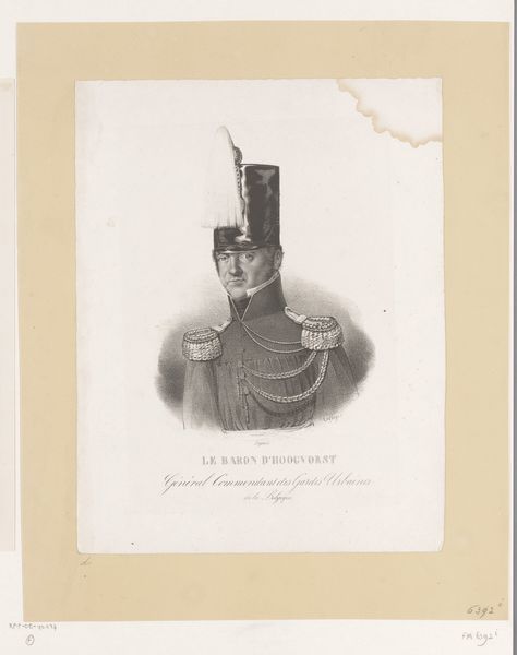 Curator: At first glance, there's a fragility to it, like catching a dream before it fades completely. So subtle in its shading, it almost disappears into the paper. Editor: Indeed. We're looking at an intimate portrait rendered with pencil, titled "Portret van Ludwik Stecki." This dates back to somewhere between 1832 and 1839, originating from the Romanticism movement. It's unsigned. Curator: Romanticism, yes. He looks the part, all distant and... untouchable. That faraway gaze definitely screams, "brooding intellectual.” Editor: Brooding, perhaps, but also a product of his time. These highly detailed, meticulously crafted portraits, especially of those in military attire, were very fashionable displays of status and allegiance during the first half of the 19th century in Europe. Curator: Well, he's certainly ornamented for battle or the ballroom. Medals, epaulettes... is that... hair? Is that his or part of the coat? Looks so very big, I wonder does this accentuate or somehow disguise him? Editor: Quite observant. Yes, the elaborate curls surrounding his face are part of his extravagant military jacket, popular with the aristocracy. His very clothing proclaimed wealth and power. Though crafted with great skill, one might question the authenticity behind these rigid visual vocabularies of portraiture. Curator: It makes me consider the sitters experience, too, not merely what they stood for! I feel that this might conceal him. You know, the man inside the uniform. I can barely catch the eye and connect to the fellow. I suppose he may simply like dressing up and performing to impress... We’ve all done that... right? Editor: Performance is integral. He likely understood and participated actively in this construction of image, reflecting his sense of self within broader societal expectations. That makes you wonder about our expectations in art? Is this piece a good way of truly knowing Ludwik? Curator: A fun point. Perhaps we have glimpsed part of who he wanted to be through his commissioned attire and this drawing. A portrait is, as much about the artist interpreting the sitter as about the sitter projecting something outward. Isn’t that just like ourselves, really? We decide which parts we show. Editor: A layered perspective. In the end, regardless of historical interpretation, portraits allow glimpses into the negotiation between identity and representation, offering space to ponder human nature, social expectation, and our urge for understanding each other across time.